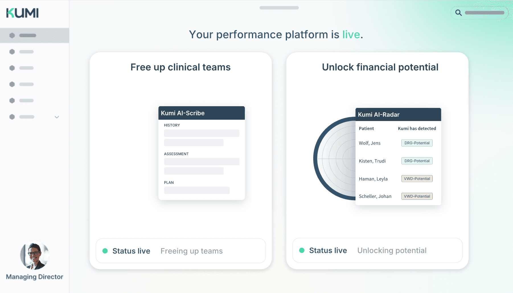 "Kumi is the common thread for organizing our clinic and enables us to work hand in hand as a team. The new AI solutions in the treatment pathway are the biggest leap in innovation that medicine has seen in decades!"